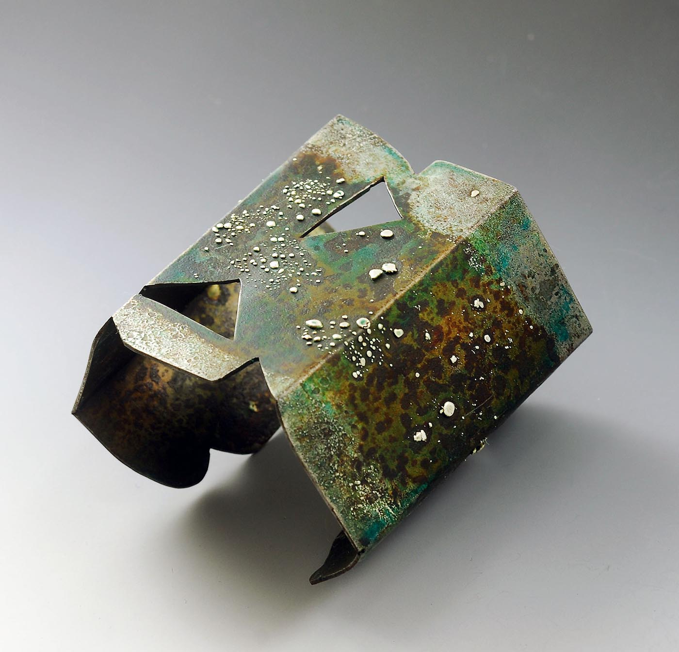 A standout in every way, this angular steel cuff is fused with white bronze and silver powder. The layered patina gives it an otherworldly, ancient feel.